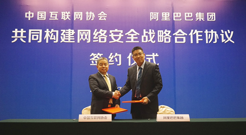 中国互联网协会秘书长卢卫与阿里巴巴集团首席风险官刘振飞签署战略合作协议