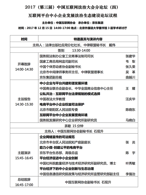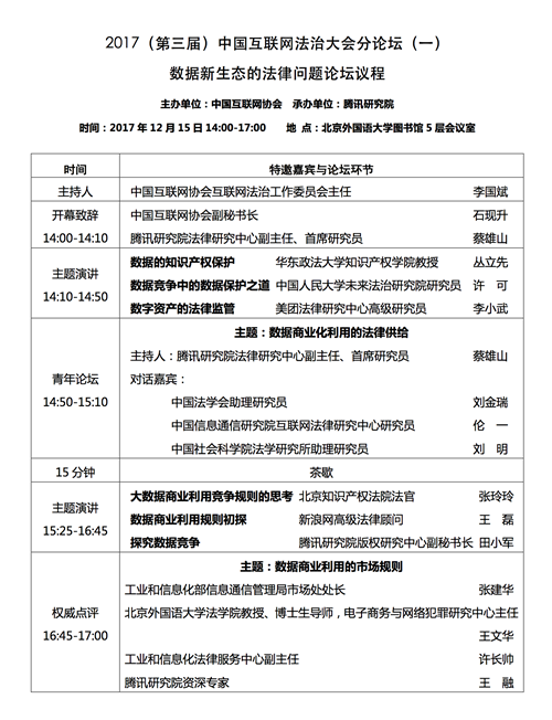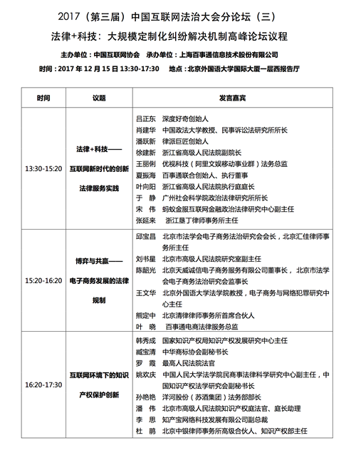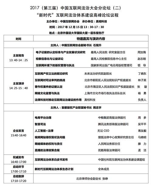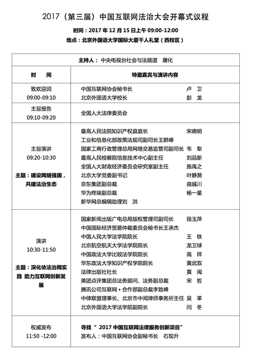 关注 | 2017(第三届)中国互联网法治大会议程