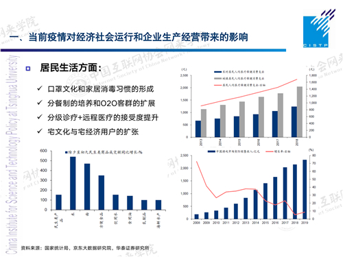 第一,我们看当前的疫情对经济社会运行和企业经营都带来了哪些影响。大概分为几个方面:一是从居民的生活方面看,由于疫情防控的需要,大家在医疗卫生、餐饮、在线诊疗,甚至包括一些我们说的“宅”文化、“宅”经济等方面都出现一些新的变化。因为已经有一个月时间大家没有办法出门,都待在家里,其实带来一些新的需求,比如口罩、卫生消毒用品,这个是最明显的。我们目前的口罩产能其实已经恢复到最大,但还是不能满足现有需求,这是一方面。