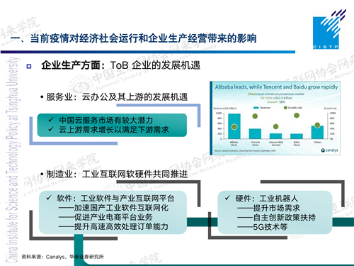 在整个疫情发展早期,像百度的智能云、像腾讯的腾讯云,当然还有市场份额最大的像阿里云,都有非常显著的增长。还有一些像即时会议,协同工作的办公软件,很多企业都推出了开放的模式,得到了很大的增长,这是在办公服务的领域。