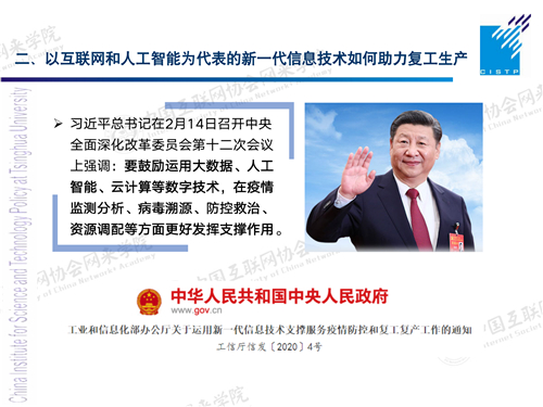 前面是一个背景。在这样一个大的背景下,我们今天想探讨的问题是,如何利用信息技术为复工复产提供助力,同时这方面又有什么样的政策需求和政策上的考虑,需要我们注意。