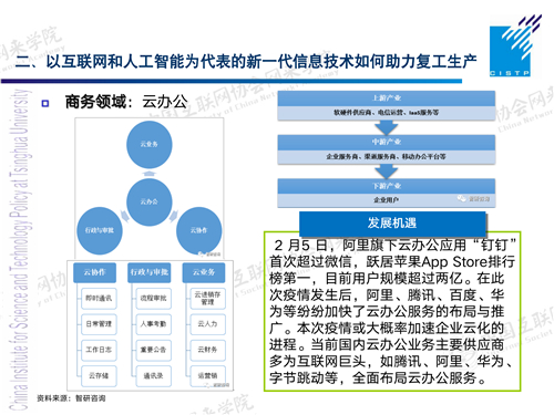 阿里研究院有一个研究,对于我们怎么去用新一代信息技术加快企业复工复产有一个比较清晰的认识。