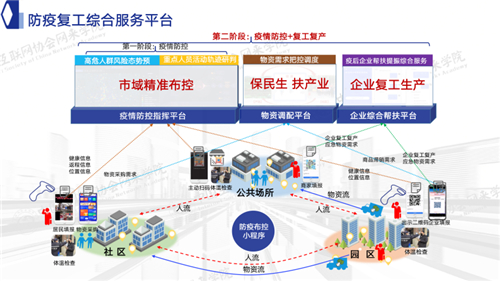 这个阶段我们推出了一个综合管理平台,一方面用一个小程序去收集企业及个人的健康信息及企业诉求;另一方面用疫情指挥平台、物资调配平台和企业综合帮扶平台共这四块内容构成一个完整的复工复产解决方案。