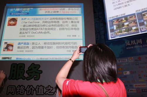 腾讯微博“上墙”展示引起参会观众极大兴趣